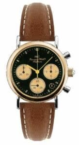 The IWC Portofino Lady Chronograph IW3730-03 has a stainless steel & rose gold case with a diameter of 29.00mm, which holds the ‘MecaQuartz’ caliber 631 chronograph movement. The dial is Black.