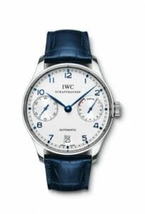 The IWC Portugieser 5001 was introduced in 2004. This Portugieser features a case of 42.3mm, which holds a self-winding movement with power reserve at 3:00, date at 6:00, and small seconds at 9:00.The earliest versions are powered by caliber 50010 (ca. 2004-2005); later models use either the 51010 (2005-2007) or 51011 (2007 onwards).Reference IW5001-07 has a Stainless Steel case and a Silver dial.
