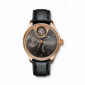 The Portuguese Tourbillon Mystere 5042 features a hand-wound movement with tourbillon, small seconds and power reserve indicator, which is housed in a 44.2mm case.This reference, the IW5042-10, features a white gold case with an ardoise colored dial. It is limited to 500 pieces.