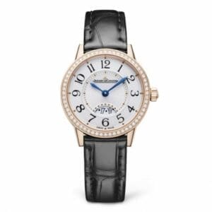 The Jaeger-LeCoultre Rendez-Vous ref. 3402530 has a pink gold case (29.00mm) with diamond-set bezel, which houses the quartz caliber 688. The dial is silver.