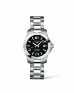 The Longines Conquest is a sports watch with elegant looks. As presented, it features a stainless steel case of 29.5mm that is water resistant up to 300 meters; it is powered by caliber L595.