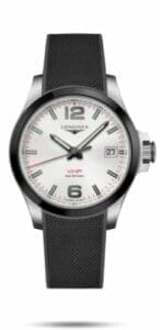 The Longines Conquest V.H.P. (‘Very High Precision’) was introduced in 2017. The models within this collection are all powered by extremely precise quartz movements accurate to approx. 5 seconds a year. They come in various sizes and with a choice of dials. The pictured reference L3.719.4.76.9 has a stainless steel case with a diameter of 41.00mm which is crowned by a ceramic bezel. The dial is Silver.