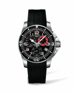 The Hydroconquest is Longines’ dive watch par excellence. Water resistant up to 300 meters, in present configuration it features a stainless steel case of 41mm and a quartz chronograph movement.
