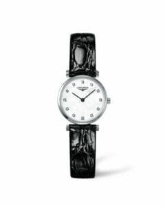 The ‘La Grande Classique de Longines’ is exactly what its name promises: a classic wristwatch. Having its reference number start with L4.209 this watch features a 24mm case which holds a 13mm strap. It is powered by the quartz L209 movement. Ref. L4.209.4.87.2 has a mother-of-pearl dial with diamond indexes.