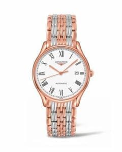 The Longines Lyre reference L4.960.1.11.7 has a stainless steel case of 38.50mm, which is PVD coated in red gold. It is powered by a self-winding movement with central seconds and date (caliber L888.5). The dial is White.