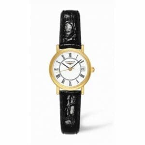 The Longines Presence is a very traditional and classical wristwatch that comes in a number of variations. The present version has a 18k yellow gold case with with a diameter of 23.5mm. It is powered by the quartz caliber L152 and fitted with a leather strap.