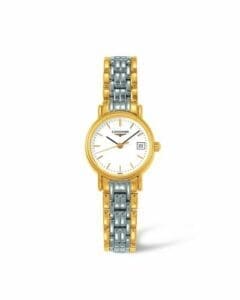 The Longines Presence is a very traditional and classical wristwatch that comes in a number of variations. The present version has a stainless steel case with with a diameter of 23.5mm. Its gold tone comes from a PVD coating. It is powered by the quartz caliber L250,