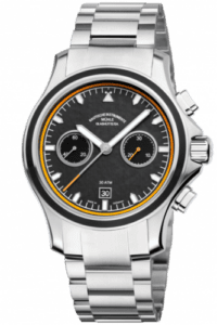 he Mühle ProMare Chronograph is a robust sports chronograph introduced at BaselWorld 2016. It suits a wide range of outdoor and water activities, from sailing through to kite buggying and right through to waterskiing. This active nautical focus also formed the inspiration for the name of this Mühle watch, which was created from “pro” and “mare”, a combination of Latin terms meaning “for the sea”.Reference M1-42-04-NB has a carbon-coated dial and is fitted with a stainless steel bracelet.