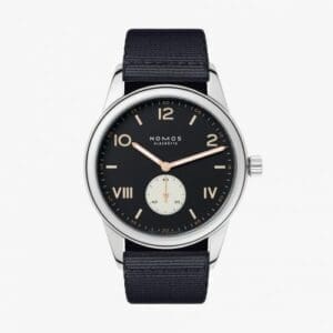 Introduced in 2021, the NOMOS Club Campus 738.S4 has a black dial with gold-toned accents. Inside ticks the hand-wound caliber Alpha. It is exclusively available for the Chinese market.