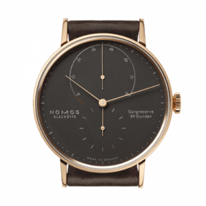 The Lambda represents the very best that Nomos is capable of. It features an elegant tripartite gold case and a clean dial typical of the Nomos design language. The movement is the hand-wound caliber DUW 1001.Reference 954 has the smaller 39mm case in rose gold case and a ‘samtschwartz’ (velvet black) dial.