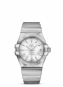 The Constellation 35 has a brushed finish and is powered by Omega’s Co-Axial automatic movement. This Omega Constellation is available in many different materials and with a choice of dial colors, all sharing the timeless look of this iconic design with the signature claws on the side of the case and brushed bezel emboldened by tone-in-tone Roman numerals.