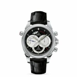 The ref. 4847.50.31 Deville Chronoscope has a stainless steel case and a black dial with silver subdials. Courtesy of its caliber 3612, this model is equipped with a split-seconds chronograph.