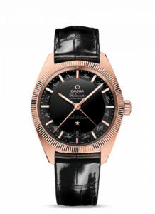 The Omega Globemaster Annual Calendar was introduced at BaselWorld 2016. At 41mm, the case is 2mm larger than that of the regular Globemaster. The movement features an annual calendar function, with the month being indicated through a central pointer hand.Reference 130.53.41.22.01.001 has a ‘Sedna’ gold case and a black dial. This version was added to the collection in 2019.