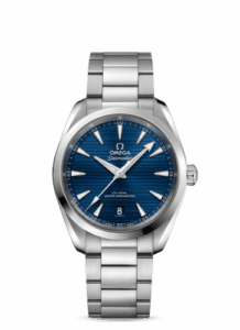 The original Omega Seamaster Aqua Terra was introduced in 2002 as a successor to the earlier Seamaster 120 – a more elegant, less sporty version of Omega’s dive watches. It was available in a wide variety of configurations, with either quartz or mechanical movements. Since then, the Aqua Terra has been revamped several times, with the present generation having been launched at BaselWorld 2017.Reference 220.10.38.20.03.001 has a stainless steel case and matching bracelet. It is powered by the Master Co-Axial caliber 8800 and features a blue dial.