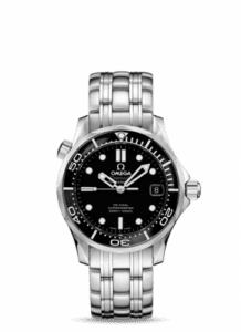 The 212.30.36.20.01.002 is the mid-size cal. 2500 Omega Seamaster with black dial and ceramic bezel insert.The OMEGA 300 was the perfect accessory for professional divers. No one was in a better position to describe the OMEGA Automatic Seamaster 300 at work then Alain Julien, a French commercial diver who wore his “300” on a daily basis in 1958 and 1959. Julien wrote “The Seamasters are of extraordinary solidarity and precision. No other watch competing with Omega has ever resisted the hardships linked to such underwater work as seabed prospecting, pipe laying, repair of works such as piers and dams, and recovery work on wrecks. The Seamaster 300s presented no defects. Despite the shocks of often extreme brutality, the cold water, and the great depths at which we work, they remained of an astonishing robustness and precision. By way of indication, each of us has dived more than 1,500 times.”