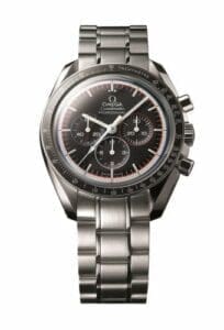In 2011, Omega introduced the Speedmaster Moonwatch “Apollo 15” 40th Anniversary Limited Edition to commemorate the 40th anniversary of the Apollo 15 mission.It is a classic Moonwatch: it has a polished and brushed stainless steel case and bracelet, a black aluminum ring with a tachymeter scale on the bezel and a domed shatterproof hesalite crystal. Its three subdials are arranged in true Speedmaster Professional fashion on the black dial: the small seconds at 9 o’clock, the 12-hour counter at 6 o’clock and the 30-minute counter at 3 o’clock.There are also some features which distinguish the Apollo 15 40th Anniversary model from the classic Speedmaster Professional. This Limited Edition timepiece has a minute track in blue, white and red – the three colors of the Apollo 15 patch. There is a blue ring around the small seconds subdial; there are white and red rings around the 12-hour and 30-minute counters respectively.The screw-in caseback is embossed with an image of the Lunar Rover and the words “APOLLO 15” and “40th ANNIVERSARY”. The outer circle of the caseback is black chrome engraved with “THE FIRST WATCH WORN ON THE MOON”, “JULY 30, 1971” and the limited edition number.