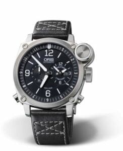 The Oris BC4 01 690 7615 4164-07 5 22 58FC has the BC4-style cushion-shaped case with a diameter of 42.70mm, which houses a caliber Oris 690 self-winding movement, which can display a second time zone fully independent of the first. The vertical crown at 2:00 operates the inner rotating bezel.