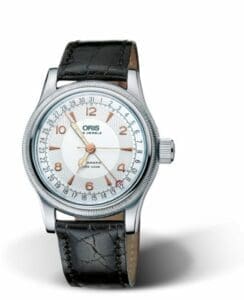 The Oris Big Crown Original Pointer Date 01 754 7543 4061-07 5 20 53 has a Stainless Steel case of 40.00mm. The front has a domed plexi glass; the movement can be seen through the mineral glass case back. The dial is Silver.