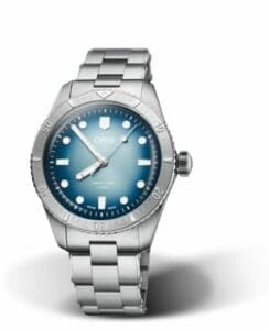 The Oris Divers Sixty-Five reference 01 400 7774 4015-Set is a limited edition of 200 pieces created in collaboration with Chronos, a German watch makagainze This watch has a stainless steel case of 38.00mm. Power comes from caliber Oris 400 ND in no-date execution. The dial is Blue.