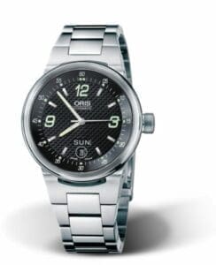 The Oris WilliamsF1 Team Day Date 01 635 7560 4164-07 8 25 01 has a stainless steel case of 40.50mm, and a Black dial. This watch is powered by caliber Oris 635, a self-winding movement which indicates both day and date.