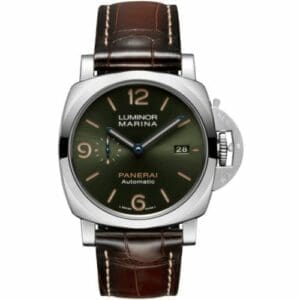 The Panerai Luminor Marina Platinumtech reference PAM01116 is a limited edition of 70 pieces introduced in 2021. It features a case made of Platinumtech – a proprietary platinum alloy. The dial is green. Inside ticks a self-winding movement with a three-day power reserve.