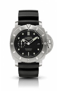 The 2013 PAM 364 Luminor Submersible 1950 was introduced in 2013. It features a titanium case with a depth rating of 2500 meters and is powered by caliber P.9000.