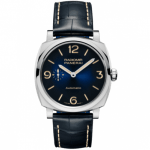 The Panerai Radiomir 1940 ref. PAM00933 has a stainless steel case of 42mm. Part of the Mediterraneo sub-series, it features a gradient blue dial.
