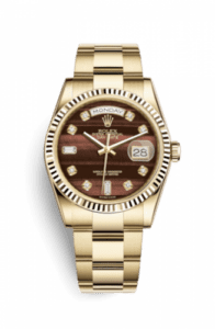 The Rolex Oyster Perpetual Day-Date is an iconic watch that hardly needs an introduction. Only ever available in precious metals (save for a few prototypes), it was for many years the undisputed king of the Rolex collection and the singular most recognizable ‘expensive’ watch to the general public. In its present form, the case measures the traditional 36mm. It is driven by caliber 3155.Reference 118238-0420 has a diamond-set bull’s eye stone dial.