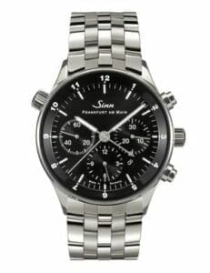 A popular and successful watch from the house of Sinn Spezialuhren. The Frankfurt Financial District Watch model 6000 was launched in 1999. With ‘Frankfurt am Main’ lettering on the dial and rotor engraving of the Frankfurt skyline, the chronograph documents for the first time the extraordinary relationship between the company and the financial metropolis. Model 6000 also marks the start of a classic series of Frankfurt Financial District Watches, each with their own individual characteristics. Of particular significance is model 6099. Released on the occasion of the 15th anniversary and based on the original model, the classic, elegant chronograph displays three time zones on a 12-hour basis and a rotor engraving of the Frankfurt skyline. The originality of this mechanical timepiece is underscored by its 41.5 mm diameter.