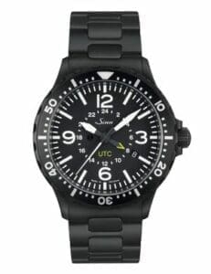 Based on the 856 series, and designed as a functional instrument watch in the tradition of Sinns’ cockpit navigation clocks, this pilot watch also features a pilot’s bezel which permits its wearer to measure or check set time intervals. The features include Magnetic Field Protection of up to 80,000 A/m, Ar-Dehumidifying Technology and pressure resistance of up to 20 bar. The pilot’s bezel and the second time zone on a 24-hour basis make these watches perfect, all-purpose instruments.The stainless steel pilot’s bezel with minute ratcheting can be rotated on both sides and features a special mechanical system developed by Sinn to protect against loss. Like the case material, the base of the bezel is tempered with TEGIMENT Technology. The labelling is silver on an inset, black anodised aluminium ring to ensure optimal scale readability. A luminous triangle serves as the 0 / 60 minute mark. The rotating pilot´s bezel can be turned in both directions and clicks firmly and audibly into place at minute intervals.