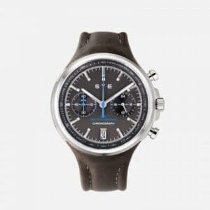 The MOT1ON is the first wristwatch by the French brand SYE (for Start Your Engines). The SYE MOT1ON boasts a solid stainless steel body made up of five mechanical components. It features a distinct strap attachment system, which integrates the leather strap into the case body almost seamlessly, whilst allowing for easy changes via a central screw and a hubcap-style back. The case measures 40.50mm across. For 2020 it is available in either a chronograph or a 24-hour version.The MOT1ON Chronograph is powered by the caliber VK64 meca-quartz chronograph movement. Dressed up as reference MCFE-BL-TU, it features a Black dial.