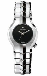 The TAG Heuer Alter Ego {WATCH_REF] has a sculpted case crafted from stainless steel, with a diameter of 29.00mm. The dial is Black. This watch is powered by the a quartz movement with central seconds and date (caliber 956.112).