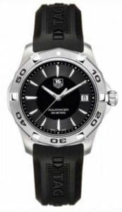 This TAG Heuer Aquaracer has a stainless steel case of 39mm, which houses a quartz movement with date function by ETA.