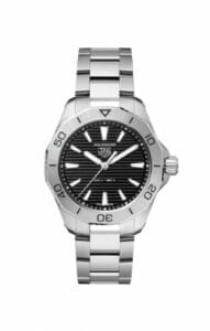 The TAG Heuer Aquaracer Professional 200 reference WBP1110.BA0627 was introduced in 2022. This Aquaracer features a stainless steel case of 40.00mm, which is crowned by a 12-sided bezel with engraved stainless steel inlay. The dial is Black. Inside ticks a quartz movement.