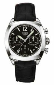The TAG Heuer Monza {WATCH_REF] has a cushion-shaped case of 38.00mm, and a Black dial. This watch is powered by caliber 2894-2, a self-winding movement with chronograph.