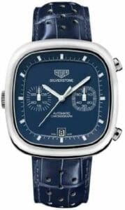 The TAG Heuer Silverstone CAM2110.FC6258 is a limited edition of 1860 pieces. This watch has a cushion-shaped case and a dial. Inside ticks a the Calibre 11, a self-winding movement with chronograph and date.