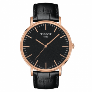 The Tissot Everytime Large pairs a classic look with a contemporary case size of 42mm. This watch is powered by a quartz movement with central seconds. The Everytime Large is available in a number of configurations; in its present form, it features a rose gold plated case and a black dial.
